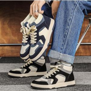 ハイカット スニーカー メンズ ミドルカット ステッチ スエード調 ミックスカラー シューズ バッシュ ブラック 通学 ダンス 韓流