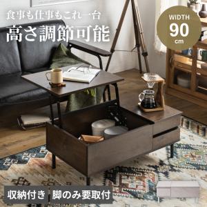 テーブル 昇降式 90×50cm 収納付き 天板昇降 引出 北欧 おしゃれ リビング 在宅勤務 テレワーク 昇降式テーブル GB-INTE-1374
