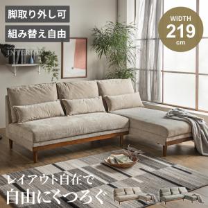 ソファ ソファー カウチソファ 3人掛け 198cm 幅198 スツール ローソファー ロータイプ可能 組み替え自由 スツール クッション付き