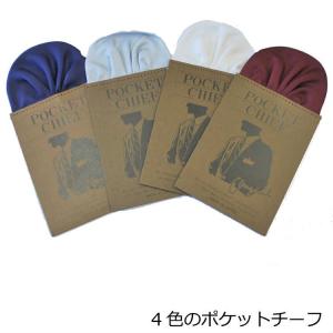 4色の無地のシルク100%のポケットチーフ下部分は厚紙使用 パフドスタイル 下部の台紙のイラスト(メンズ服)の選択は不可