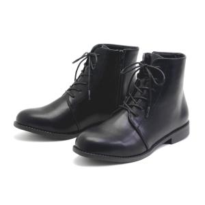 レディース 軽量 レースアップ ショートブーツ ローヒール スムース ブラック