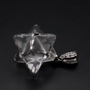 【天然水晶×マカバスター】パワーストーン ペンダントトップ 約12mm|ジルコン付き|神聖幾何学 六芒星|満月浄化|開運 お守り|スピリチュアル