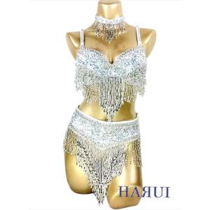 ベリーダンス 衣装 パールデザイン ブラ ベルト 上下2点セット ゴールド