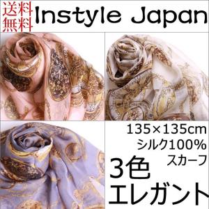 スカーフ レディース ストール シルク100% エレガントE ピンク・ホワイト・グレー 大判スカーフ ストール Eサイズ:135×135cm インスタイルジャパン
