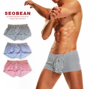 SEOBEAN セビン ストライプ ローライズ トランクス 067 前開き ボタン スーパーローライズ ショートトランクス
