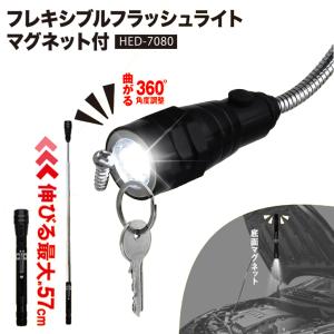 【HIRO】フレキシブルフラッシュライト マグネット付 HED-7080【配送方法:追跡可能メール便】【 ボタン電池LR44×4個 LEDライト 点検 電設工事 隙間 細部 防犯