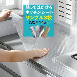 キッチンシート サンプル30×14cm 3枚 台所用 コンロ 油汚れ 水回り 防水 賃貸 はがせるキッチンシート 汚れ防止 壁紙シート のり付き リメイクシート DIY