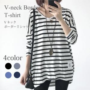 ボーダー ストレッチ ロンT レディース 長袖 カットソー tシャツ ドロップショルダー トップス インナー ゆったり シャツ 大きいサイズ 大きめ 大人 20 30 40 代