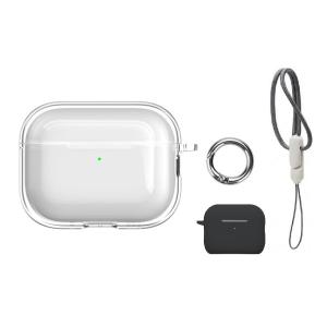 AirPods Pro 3 ケース シリコン カバー カラナビ付き 透明&ブラック 耐衝撃 軽量 ソフト・ハード素材 Apple アップル エアポッズ プロ スリー AirPods Pro 第3