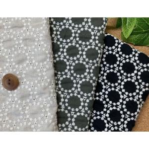 麻 国産 綿麻 つぶつぶサークル刺繍生地 1個100cmx50cm 3個までネコポス可能 KLM211