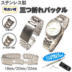 時計ベルト 三つ折りバックルタイプ 弓カン付 ステンレス製 バネ棒・交換工具・サイズ調整工具付き 18mm 20mm 22mm メンズ レディース