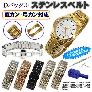 時計ベルト ステンレス製 Dバックルタイプ 直カン・弓カン付 幅広 バネ棒・交換工具・サイズ調整工具付き メンズ レディース