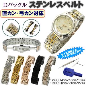 時計ベルト ステンレス製 Dバックルタイプ 直カン・弓カン付 しなやか バネ棒・交換工具・サイズ調整工具付き 12mm 14mm 16mm 18mm 19mm 20mm 21mm 22mm