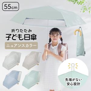 先端が尖っていない露先 折りたたみ傘 小学生 キッズパラソル 晴雨兼用日傘 子供用 55cm 無地 遮熱 遮光 UVカット ニュアンスカラー