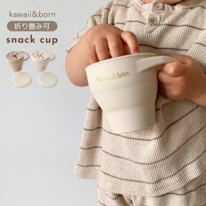 kawaii&born 折り畳める お菓子 ケース ベビー 子供用 スナックカップ おやつ入れ ギフト ブラウン ベージュ ホワイト 持ち運び