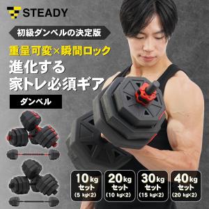 可変式ダンベル 10kg 2個セット 家庭用 ワンタッチロック バーベル化 滑り止めグリップ 365日保証 STEADY ST130-20