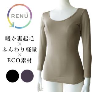 インナー レディース 長袖 肌着 下着 暖かい 冬 裏起毛 ストレッチ 無地 8分袖 起毛 あったか 女性 RENU 冷え対策 リサイクル エコ //メール便発送可