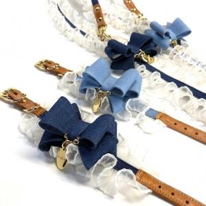 首輪 犬 おしゃれ かわいい 小型犬 中型犬 デニムタックフリル ラグジュアリー 日本製 ミントタン minttan