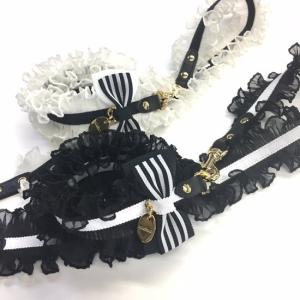 カラー&リードセット 犬 おしゃれ かわいい 小型犬 中型犬 カラー リード ボーダータックフリルリボン 日本製 ミントタン minttan
