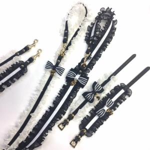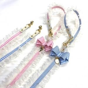 首輪&リードセット 犬 おしゃれ かわいい 小型犬 中型犬 首輪 リード キャンディータック フリルリボン 可愛い 二色使い 日本製 ミントタン minttan