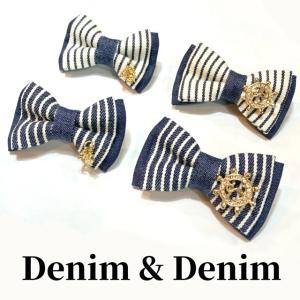 バレッタ 犬 おしゃれ かわいい 小型犬 中型犬 ヒッコリー リボンバレッタ チャーム付き 日本製 デニム&デニム denim&denim ミントタン minttan