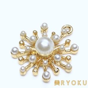 パール フラワー 花 5個 セット アンティーク風 デコ ハンドメイド アクセサリー パーツ 手芸 ピアス イヤリング ネックレス 基礎金具 基礎パーツ