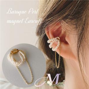 イヤーカフス レディース イヤーカフス パール ゴールド マグネット イヤリング 淡水パール バロックパール チェーン 片耳 レディース イヤカフ