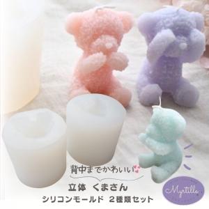 シリコンモールド くま 動物 立体 2個セット アロマストーン 石膏 アロマキャンドル モールド レジン