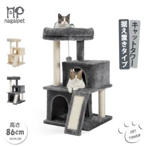 送料無料 キャットタワー 据え置き型 小型 猫タワー ハウス おもちゃ 麻紐 爪とぎ付き おしゃれ 省スペース 大型猫 猫用 おもちゃ 高さ86cm