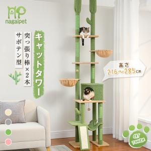 送料無料 キャキャットタワー 突っ張り スリム 多頭飼い サボテン コンパクト つっぱり 爪研ぎ つめとぎ 省スペース おもちゃ かわいい 高さ216〜285cm