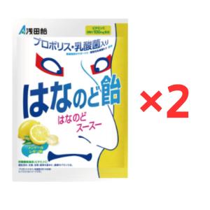 浅田飴 はなのど飴 メントールレモン味 60g ×2 (2袋セット) ビタミンC プロポリス 爽快感 個包装 咳 イガイガ 乳酸菌