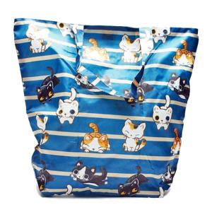 やまねこ(やまねみえこ) ファスナー付エコバッグ 青色 / 猫 エコバッグ 猫グッズ 猫雑貨