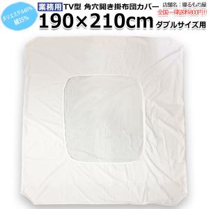 布団カバー業務用 ポリ65% 綿35% 190×210cm ダブルサイズ テレビ型 中央丸開き 角穴開き ホワイト 白 三露産業 ホテル 旅館 民宿 民泊