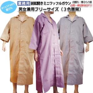 ガウン業務用 ポリ65% 綿35% 大人用フリー ミニワッフル前ボタン開き ポケット付 ブラウン グレー パープル 三露産業 パジャマ 病衣 部屋着 ホテル 旅館 民泊
