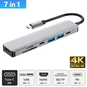 爆買USBハブ 3.0 7ポート USB拡張 小型軽量 4K HDMI PD充電 hub SD/microSD カードリーダー USB-C type-c 接続 USB3.0 変換 7in1 高速 Macbook Windows ノートPC