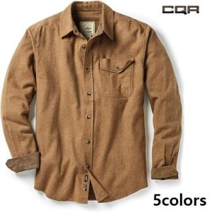 CQR シャツ 長袖 メンズ レギュラーフィット 厚手 耐久性 フランネル 無地 ネルシャツ ポケット付き 綿100 カジュアル 1サイズダウン HOF113 TESLA 爆買