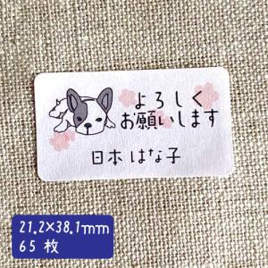 よろしくお願いします シール ハンドメイド 小さな かわいい メッセージシール ボストンテリア・フレンチブルドッグとさくら【名入れ】65枚 ■65a0035■