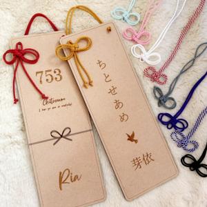 【お急ぎ対応】木製*千歳飴袋風プレート*名入れ*二重叶結びチャーム 七五三 753 男の子 女の子 撮影 小物 アイテム 前撮 3歳 5歳 7歳 記念 プレゼント ギフト