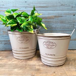 ガーデニング 雑貨 ブリキポット 植木鉢 鉢 鉢カバー プランター ブリキ バケツ アンティーク おしゃれ レグリーズラウンドSET2 YZ-MH14223-80