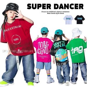 キッズダンス衣装 Tシャツ トップス ヒップホップ ファッション 派手 ガールズ 男の子 K-POP 韓国 赤 黒 緑 水色 ピンク 白