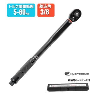 プリセット式 トルクレンチ 差込角3/8 トルク範囲5-60Nm プッシュリリース式ヘッド ハードケース付 ラチェット メンテナンス 整備 修理 工具 便利 diy