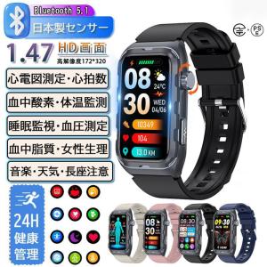 スマートウォッチ Line通知 血圧測定 心拍数 日本製センサー 心電図 呼吸率 24H健康管理 体脂肪BMI 尿酸血中脂質 運動 血中酸素 女性生理管理 体温 音楽再生