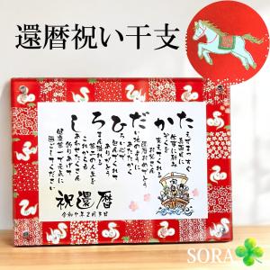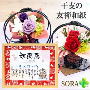 還暦祝い 60歳 プレゼント 名前詩 Mサイズと和風プリザーブドフラワー セット2026年 干支 午 馬 友禅和紙タイプ 退職 名前 メッセージ ポエム 誕生日 父 母