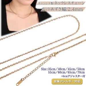 ネックレスチェーン ステンレス製 ピンクゴールド 1.5mm 35cm/40cm/45cm/50cm/55cm/60cm +5cmアジャスター付 カットあずき チェーンのみ