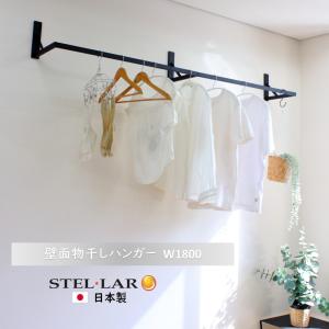 壁付物干しハンガーW1800 物干しハンガー アイアンバー ハンガー 石膏ボード壁 ランドリーバー 室内干し リビング 窓際 クローゼット 夜干し 180cm 黒 72-BLACK