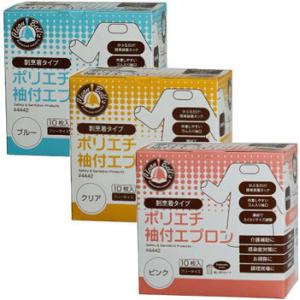 使い捨てエプロン 袖付き 長袖 川西工業ポリエチ袖付エプロン 4442 10枚入 クリア ブルー ピンク 医療 防護衣 介護