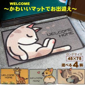 玄関 マット 屋外 泥落とし 室内 かわいい おしゃれ 洗える アニマル玄関マット レギュラー 大判 ズレない 猫 犬 キリン アニマル 柄 外用 泥除け ドア