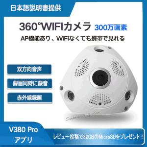 防犯カメラ 360度 300万画素 Wifi 常時録画 SDカード録画 動体検知 赤外線 双方向音声 屋内 監視カメラ v380アプリ AP機能 タッチパネル操作