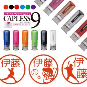 野球 ベースボール シャチハタ キャップレス9 印鑑 お名前スタンプ オーダー イラスト おしゃれ インク 見ましたハンコ 先生用
