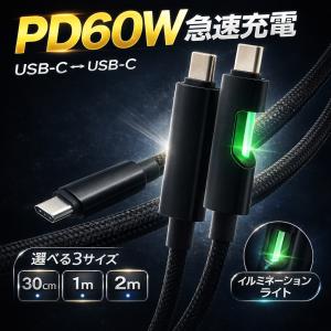 USB-C ケーブル PD60W 急速充電 Type-C to C イルミネーションライト 高耐久メッシュ 30cm/1m/2m スマホ/タブレット/PC対応